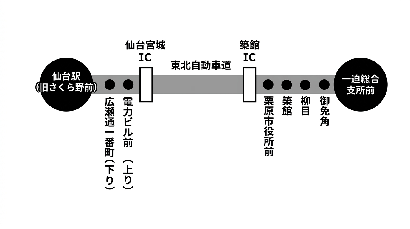 ・仙台駅~北仙台間での乗降は出来ませんので、ご了承ください。栗原市/市民バスの乗換・運行情報等はこちらからご確認ください。