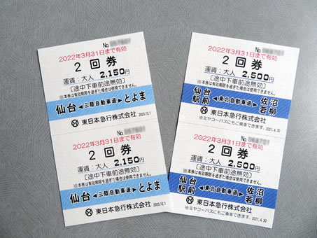 サヤカさんの家、登米能の森舞台等が見られるのは「東日本急行株式会社」高速バス「仙台~とよま線」になりますのでお間違いなく!ちなみに、現在販売している乗車券はこちらです。